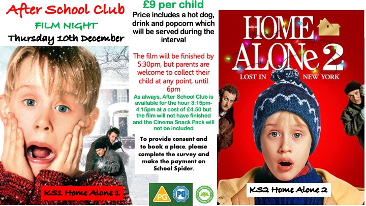 Please book your child a place by completing the survey on School Spider. Payment can also be made online, via School Spider, or by sending a checque to school, payable to CWAC.